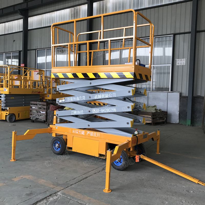 產(chǎn)品介紹:牽引式移動(dòng)升降機(jī)為人工移動(dòng)式,具有移動(dòng)靈活、升降平穩(wěn)、操作方便等特點(diǎn)。移動(dòng)式液壓升降平臺(tái)其剪叉式結(jié)構(gòu),使平臺(tái)具有較高的穩(wěn)定性和較高的承載能力,而寬大的作業(yè)臺(tái)面又可同時(shí)容納多人作業(yè)。